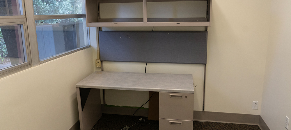 desk with upper cabinets