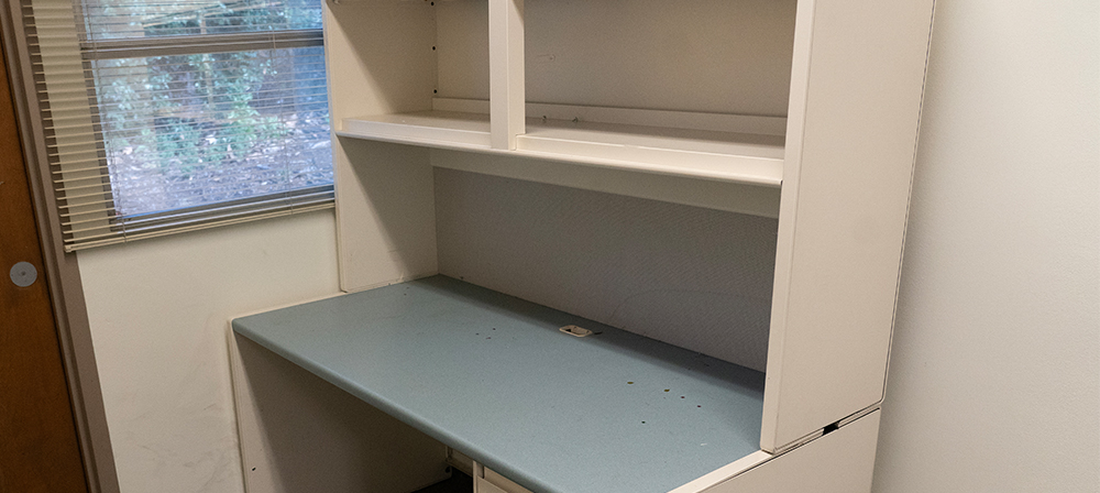single desk with upper cabinets