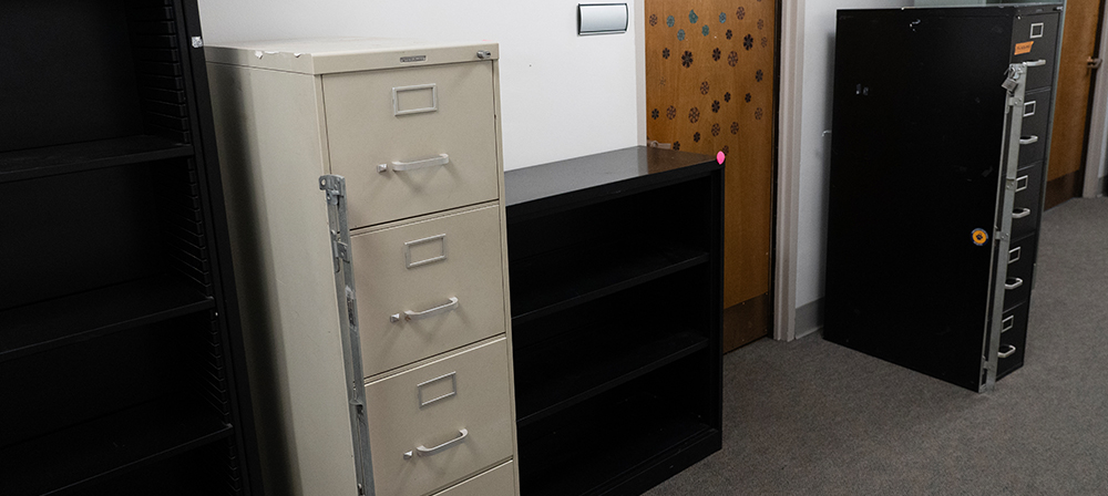 three cabinets of varying heights