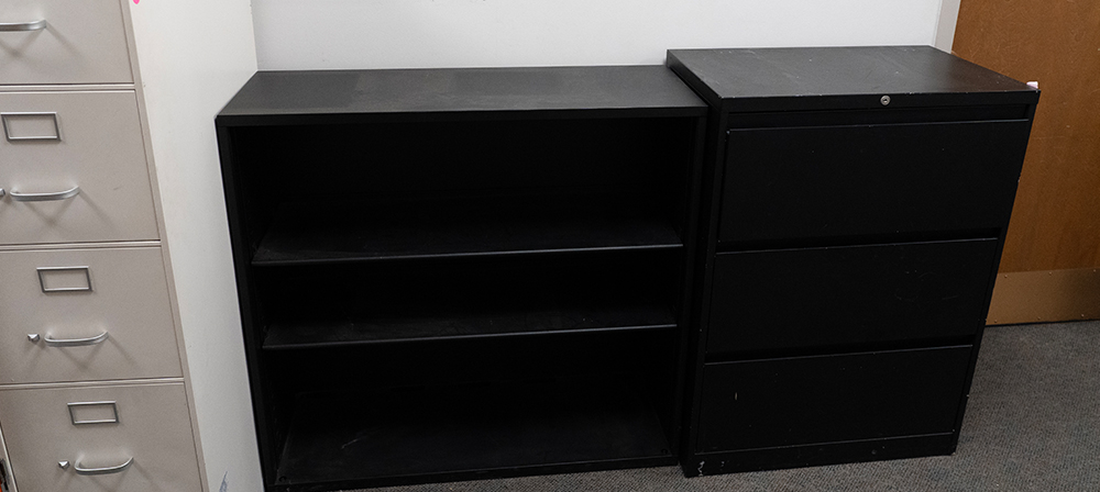 three metal cabinets