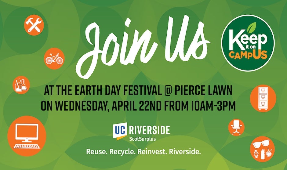 UC Riverside's Earth Day celebration on April 22 will feature tables from Campus Business Services (CBS), spotlighting two programs that are quietly making the campus greener all year round: Auxiliary Design Services and ScotSurplus. The pair represents different sides of campus sustainability: one focused on reducing consumption through smart resource sharing and the other on responsible disposal and recycling.
